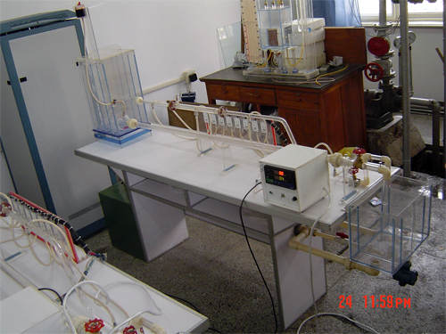 主要配置:實驗臺桌,有機玻璃整流穩(wěn)壓水箱,有機玻璃高低位突擴突縮粗、細管,有機玻璃雷諾管,調(diào)節(jié)銅閥門,測壓板,有機玻璃計量水箱,PVC板蓄水箱,低噪音防腐蝕水泵,APS循環(huán)管。II型增加流量采集傳感器1套、差壓傳感器8套,溫度傳感器,萬能信號輸入巡檢儀,軟件等。