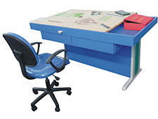 2、工業(yè)桌面標(biāo)配灰白三聚氰胺貼面防火板,PVC高溫封邊。傾角采用彈簧鉸鏈無級調(diào)節(jié)傾角,傾角范圍0—85°,同時(shí)具有鎖定裝置,確保傾斜角度不滑動。