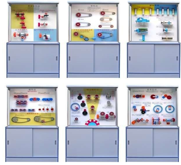 《機(jī)械傳動》示教陳列柜共分十個柜,外型用鋁合金柜架,模型材料用各色有機(jī)玻璃和硬聚氯,板面附有PVC一次成型作并附有必要圖表和文件字說明,形象逼真,制作工藝美觀。使用本陳列柜能提高教學(xué)效果,節(jié)約學(xué)時,是一套理想機(jī)械課程的示教陳列室設(shè)備。