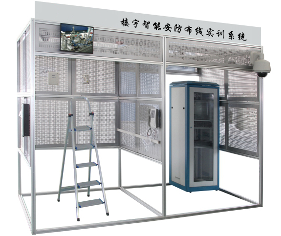 設(shè)備由1臺(tái)鋁合金支架和17塊網(wǎng)孔板搭建而成的兩層模擬樓宇建筑,分別模擬一棟樓宇建筑的一層機(jī)房、一層樓道、一層樓道大門、二層樓道、二層樓道窗戶、二層住戶、二層住戶大門、二層住戶窗戶、垂直豎井和建筑周邊。房間提供正反面?zhèn)葔晚攭Φ陌惭b范圍,可在上面安裝各種樓宇智能化器件;同時(shí)還提供房間大門和窗戶,可在上面安裝電插鎖、電磁鎖、門磁和窗戶防盜探測器等器件,實(shí)現(xiàn)智能建筑各類系統(tǒng)的安裝與運(yùn)行,如“對(duì)講門禁及室內(nèi)安防系統(tǒng)”和“閉路電視監(jiān)控及周邊安防系統(tǒng)”等。相比于單層模擬樓層,兩層模擬樓層需要考慮智能建筑的多樓層結(jié)構(gòu)關(guān)系,除了能夠培養(yǎng)學(xué)生的工程施工能力外,更能夠培養(yǎng)其工程設(shè)計(jì)能力與工程創(chuàng)新能力,符合高等院校的實(shí)踐教學(xué)需求。