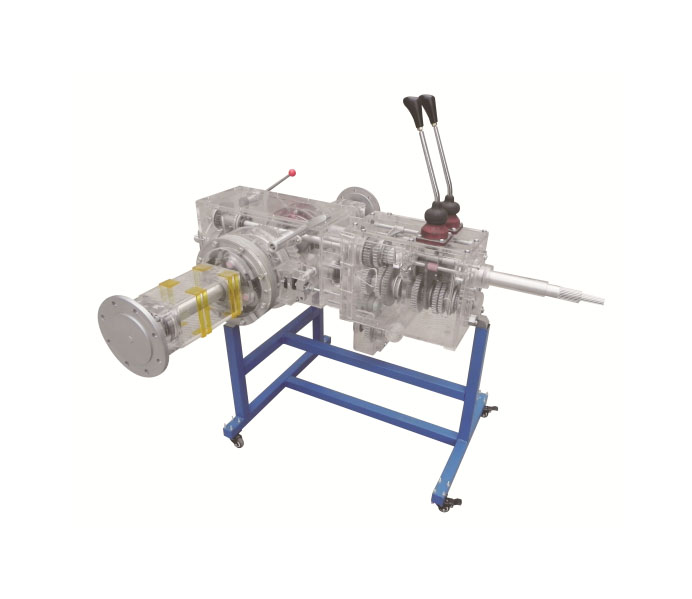 1) 本公司生產的FZ-DF450型透明拖拉機變速箱與后橋模型模型是按東風牌450變速箱與后橋模型實物1:1繪制,機殼采用進口透明有機玻璃壓鑄成型,傳動部分零件由實物和鋁合金材料組成,演示部分采用手輪手動控制,主要部位用金屬材料加固,透明直觀,運轉自如,使教學達到事辦功倍的效果.