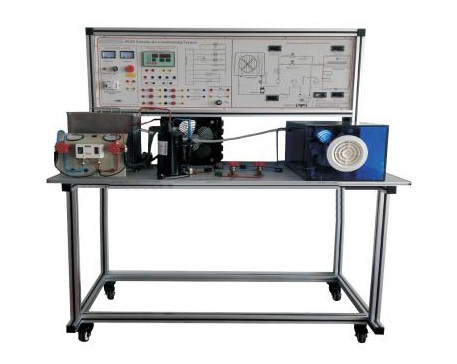 5、實(shí)驗(yàn)臺(tái)面板上噴繪有恒溫室恒濕機(jī)組制冷流程圖,